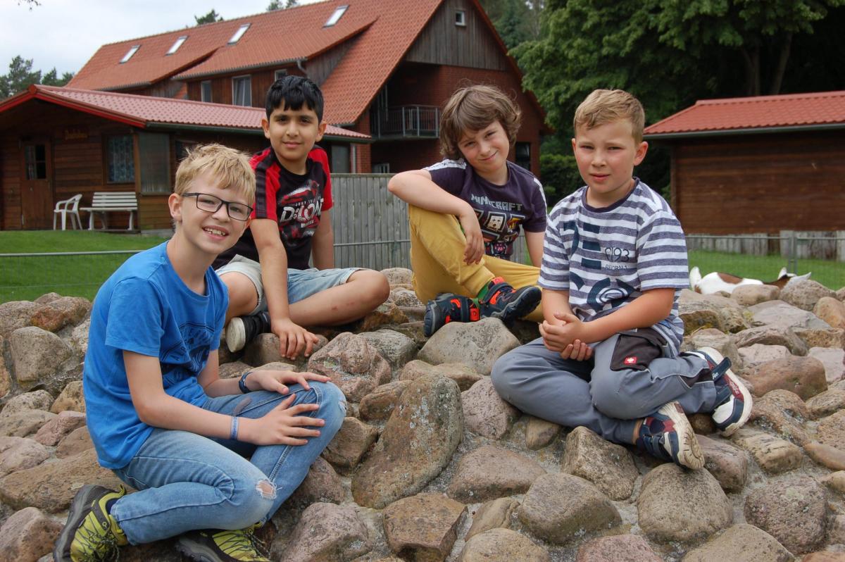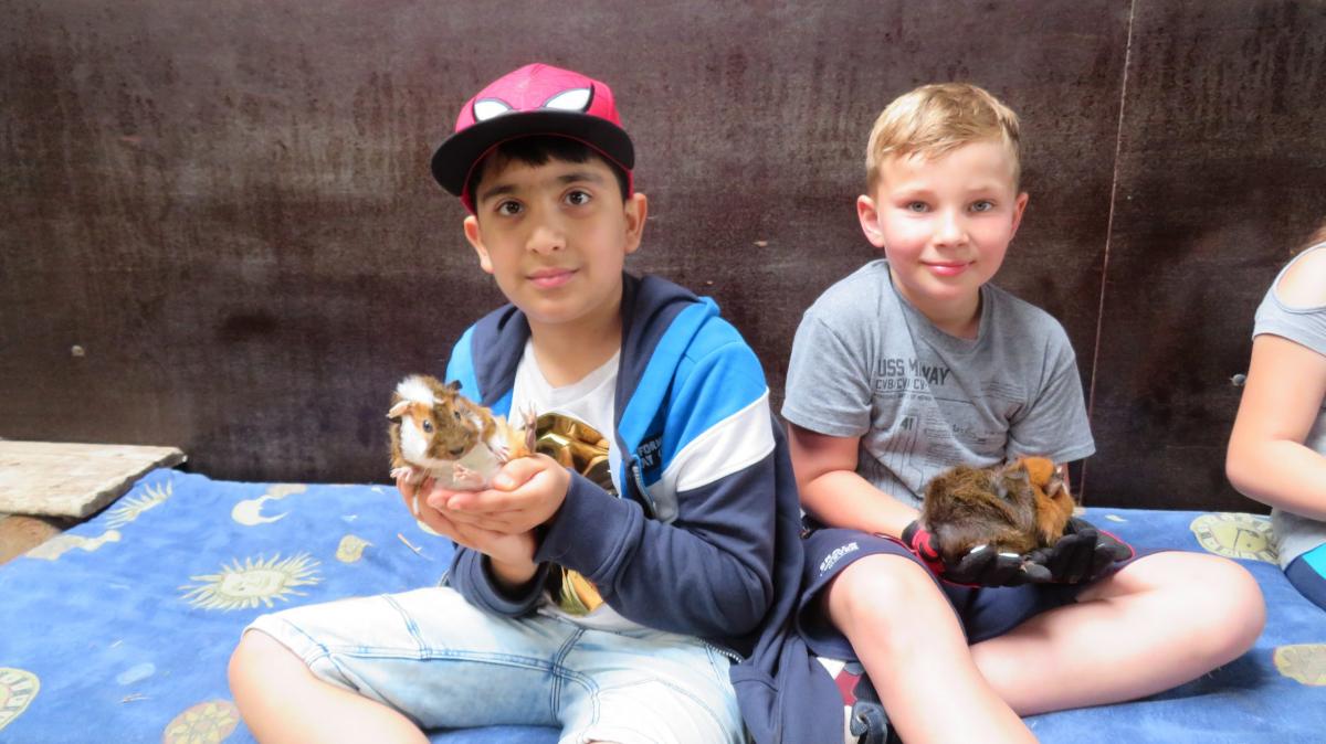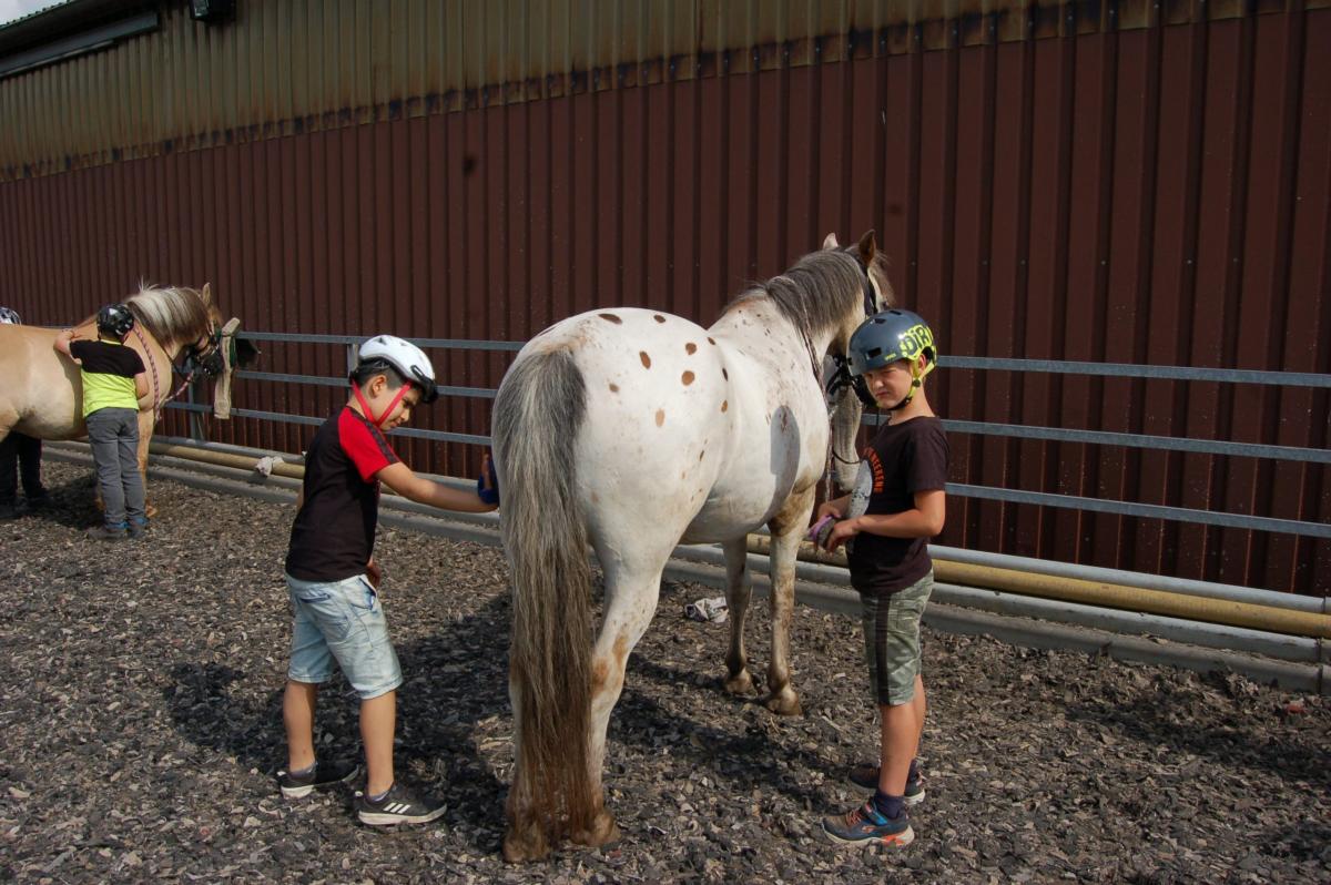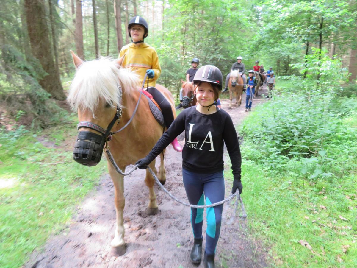 Auf dem Ponyhof konnten die Kinder viele Erfahrungen mit großen und kleinen Tieren machen. Es gab eine Streichelwiese mit Ziegen und Eseln und Käfige mit Meerschweinchen und Kaninchen zum Streicheln. Ein besonderes Highlight waren die täglichen Reitstunden und der Ausritt in den Wald mit den eigenen Ponys.