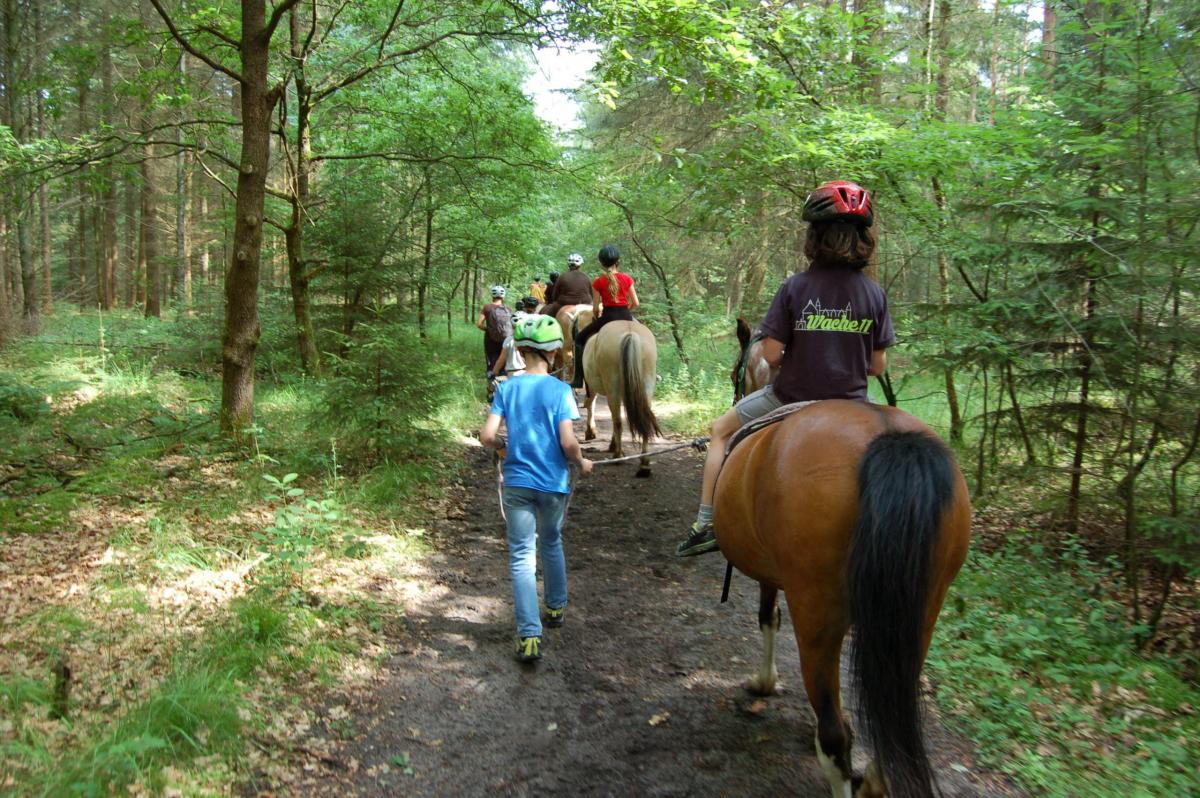 Auf dem Gelände des Ponyhofes luden ein riesiger Abenteuerspielplatz, eine Hüpfburg, viele Kettcars und Tretroller zum Austoben ein. Bei einer Planwagenfahrt mit anschließendem Waldquiz und bei der Ponyhofralley konnten die Kinder viel über die Tiere und Pflanzen des Waldes und den Ponyhof lernen.