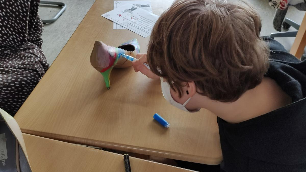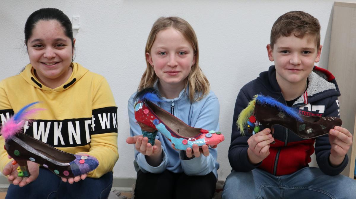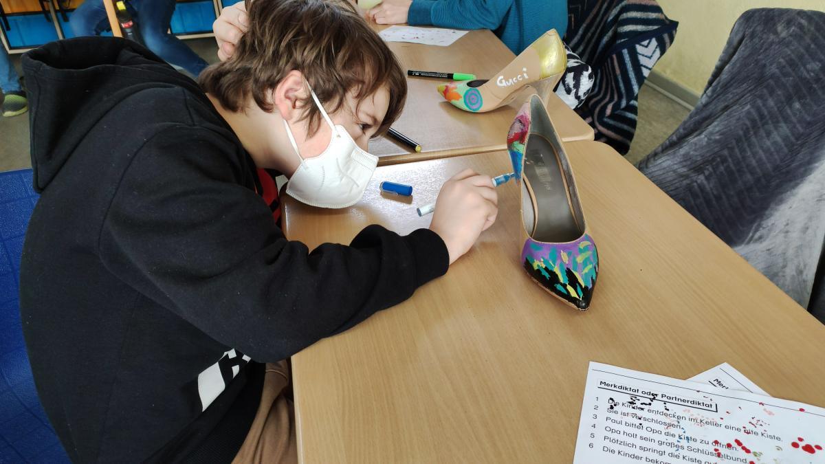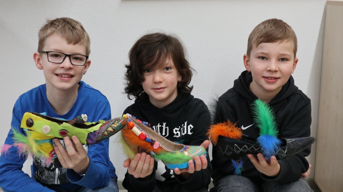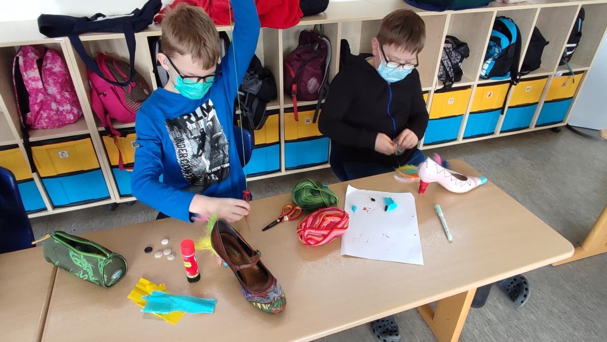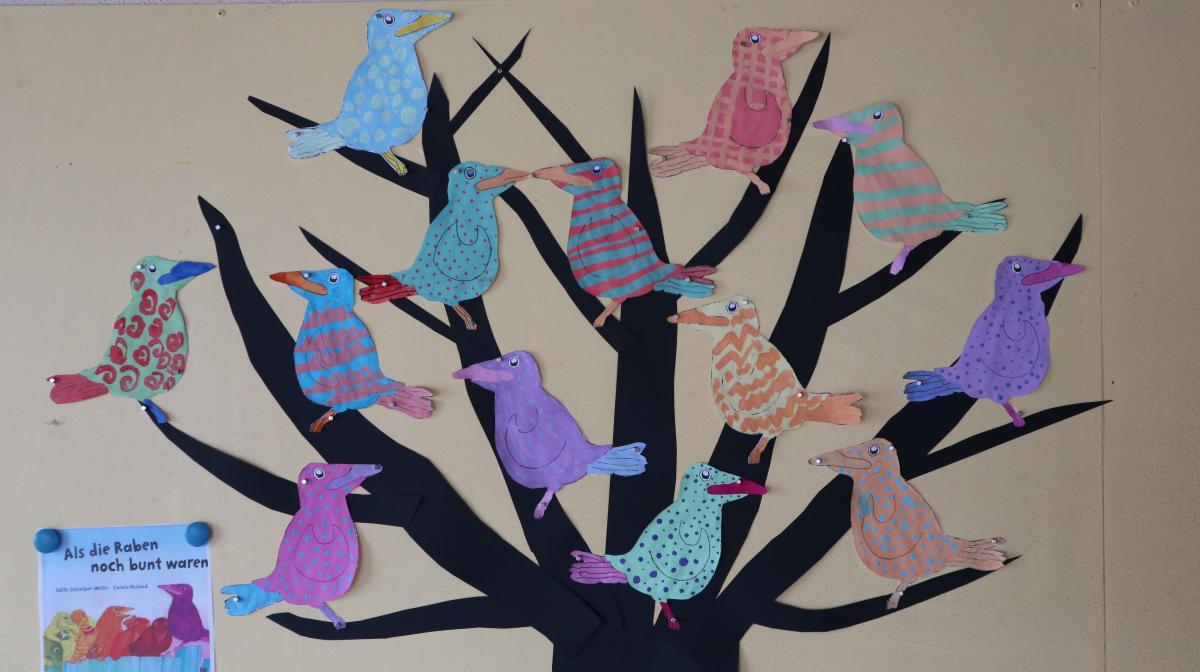Die Tigerklasse erarbeitete jeden Tag ein anderes Bilderbuch. Zum Buch „Irma hat so große Füße“ von Ingrid und Dieter Schubert wurden lustige Hexenschuhe aus Stöckelschuhen hergestellt und kleine Irma-Hexen auf Hexenbesen gebastelt. Das Buch „Als die Raben noch bunt waren“ von Edith Schreiber-Wicke bot sich an, um einen Baum voller bunter Raben für den Schulflur zu gestalten. Anschließend wurde „Die Geschichte vom Löwen, der nicht schreiben konnte“ von Martin Baltscheit gelesen. Dazu wurde eine Fortsetzung geschrieben und passende Bilder zum Buch gemalt.