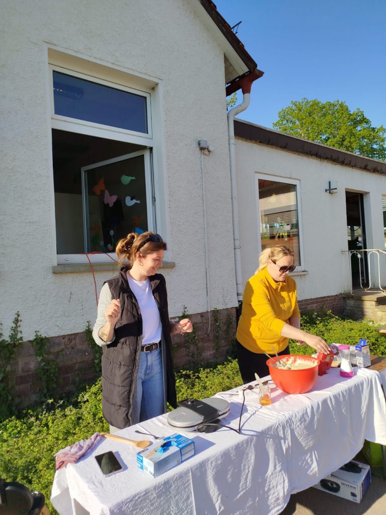 Für jede absolvierte Station erhielten die Kinder einen Stempel. Wer genug Stempel gesammelt hatte, durfte sich bei seiner Klassenlehrkraft einen Waffelgutschein abholen – und diesen dann bei Frau Hartmann und Frau Waßmann gegen eine frisch gebackene, selbstgemachte Waffel eintauschen. Ein besonderer Dank gilt Frau Engel und Frau Strübe, die tatkräftig bei der Organisation und Durchführung der Stationen geholfen haben.
