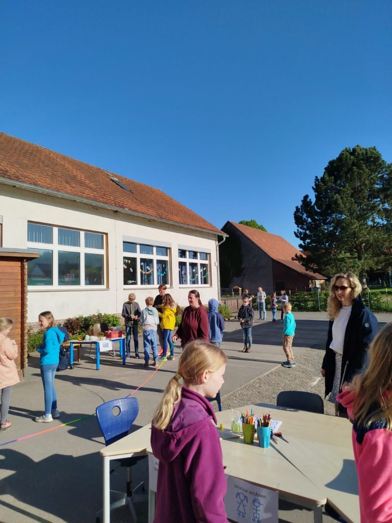 Der Tag begann mit einer morgendlichen Versammlung am dem Schulflur unter der Leitung von Frau Hartmann. Gemeinsam wurde der Ablauf des Tages besprochen. Anschließend ging es in die Klassen zum ritualisierten Erzählkreis, bei dem die Kinder vom vergangenen Wochenende berichteten.