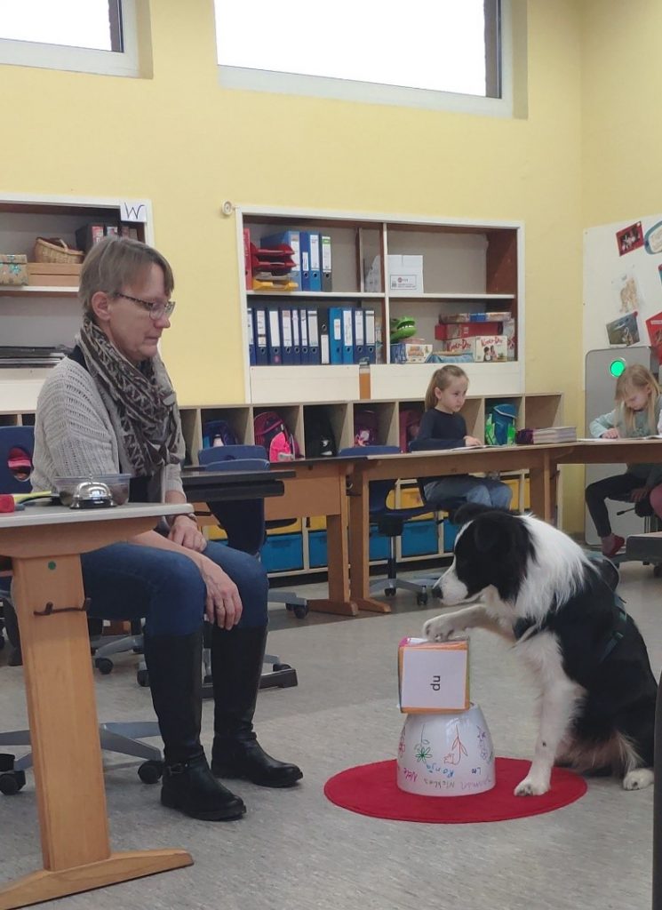 Doch Charlie ist nicht nur zum Kuscheln da – er motiviert die Kinder auch beim Lernen. Er klingelt z.B. die Begrüßungsglocke, würfelt den Lesewürfel, sucht und apportiert seinen Spielzeug-Elefanten, der immer eine kleine Tasche mit Aufgaben für die Kinder dabeihat. So wird der Unterricht lebendig, spannend und oft auch sehr lustig.