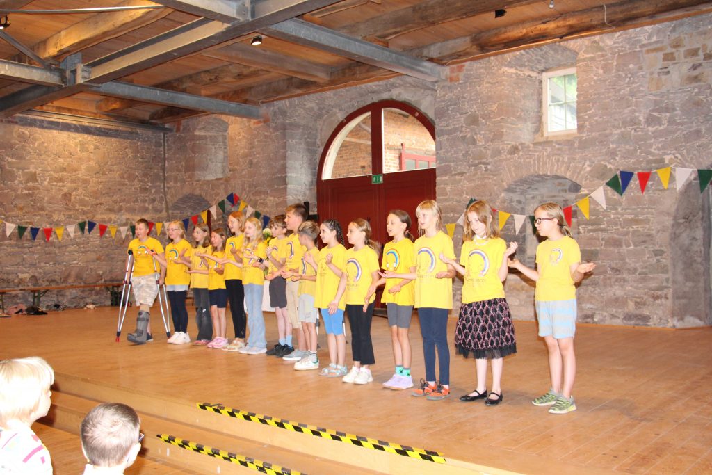 Für die musikalische und künstlerische Gestaltung sorgte Frau Littmann, die gemeinsam mit der vierten Klasse zwei Darbietungen für die Erstklässler vorbereitet hatte: Ein Lied und ein Gedicht.
