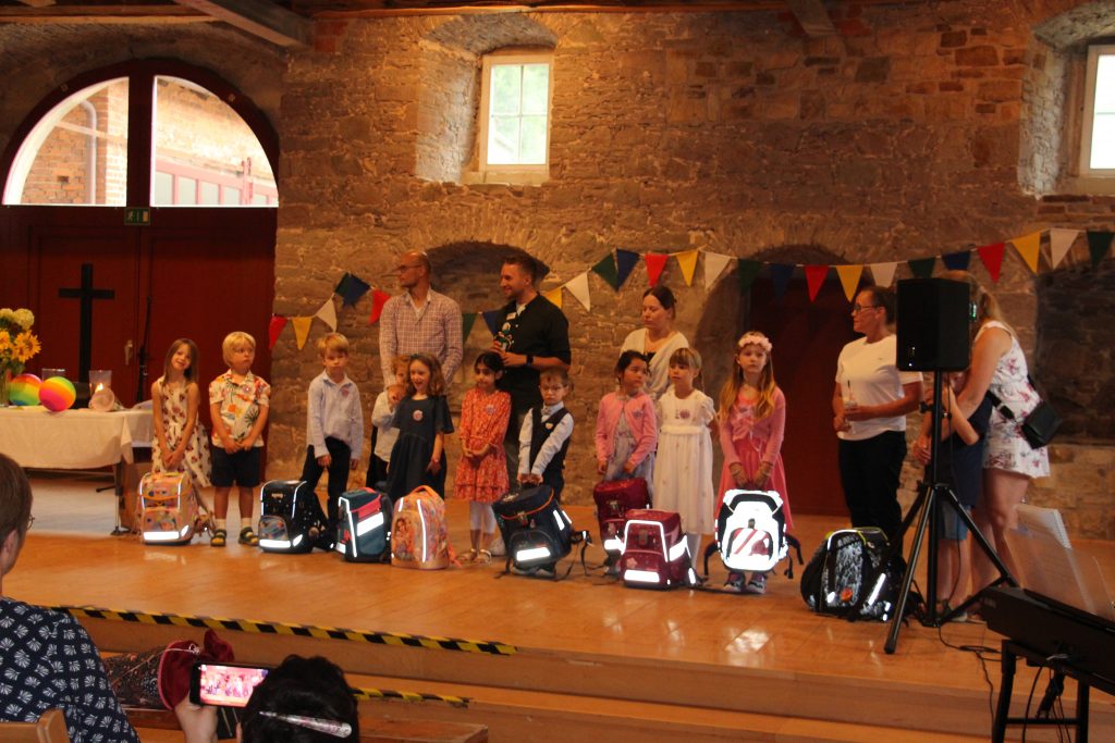 Insgesamt wurden 15 neue Schülerinnen und Schüler eingeschult. Unter der Leitung von Pastor Jan-Sören Damköhler begann die Feier mit einem Einschulungsgottesdienst. Besonders bewegend war die Rede von Frau Hartmann, die mit dem Bild eines bunten Balls den Kindern Mut machte: Wer sich schwer tut, Freundschaften zu schließen, könne einfach einen Ball mit in die Pause nehmen – schon finden sich Spielkameraden. Zugleich erinnerte der bunte Ball daran, dass jeder Mensch einzigartig und wertvoll ist.